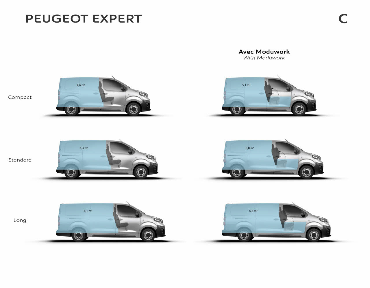 Nový PEUGEOT Expert má maximálnu užitočnú nosnosť 1 400 kg a bude dostupný v troch dĺžkach, nová verzia Compact s dĺžkou len 4,60 m, až 5,30 m pri verzii Long. Tento furgon je obzvlášť prispôsobený do mestskej premávky, s výškou maximálne 1,90 m. Čo sa týka bezpečnosti, získal najvyššie ocenenie vo svojej kategórii - 5 hviezdičiek v testoch EURO NCAP.